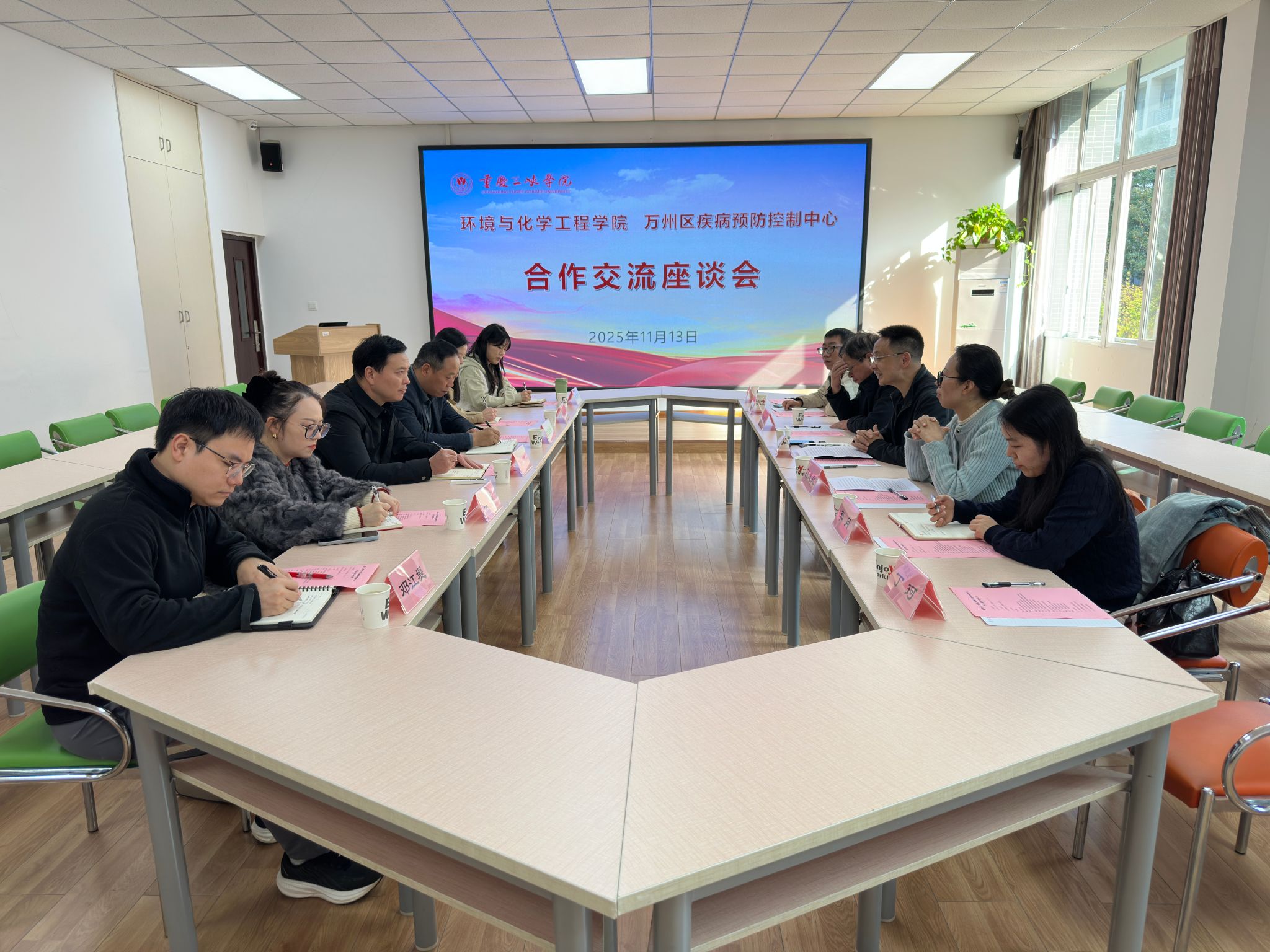 11月13日下午,重庆市万州区疾病预防控制中心副主任张学健一行5人来到学院进行合作交流。公司党总支书记刘健、环境工程系主任兰国新及相关教师代表参加了座谈。