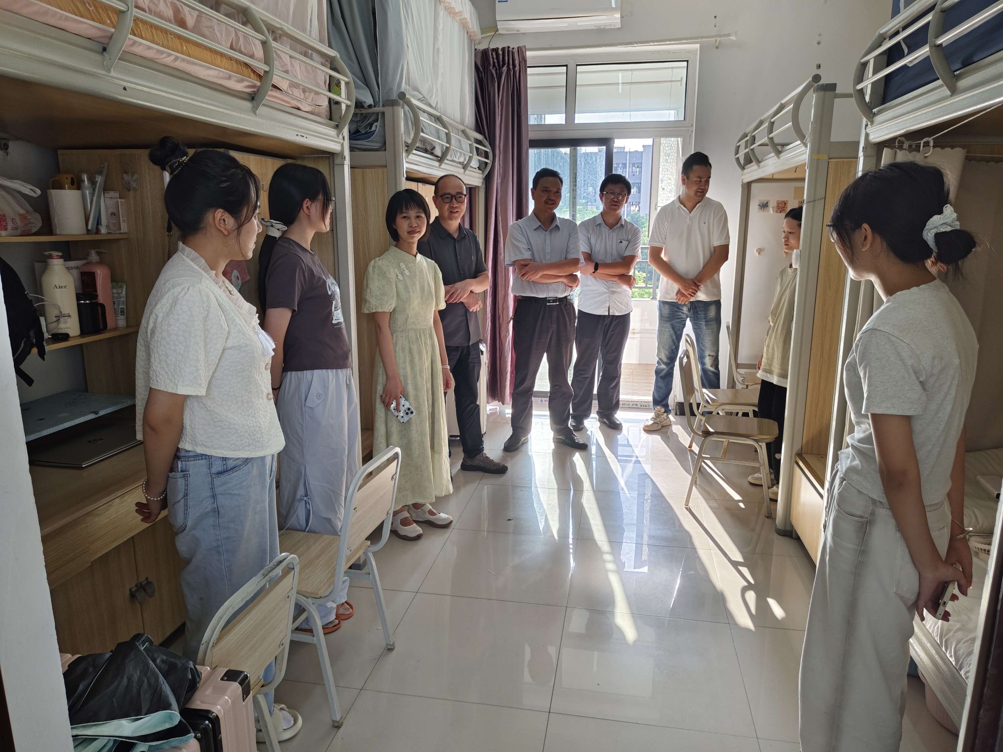 走访过程中,领导老师们询问报到流程、住宿适应及生活需求,鼓励新同学积极适应老员工活,参与校园活动,明确成长方向;叮嘱大家互帮互助,将宿舍作为大学里的“家”,遇到困难及时向学院反映。